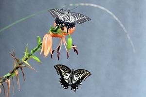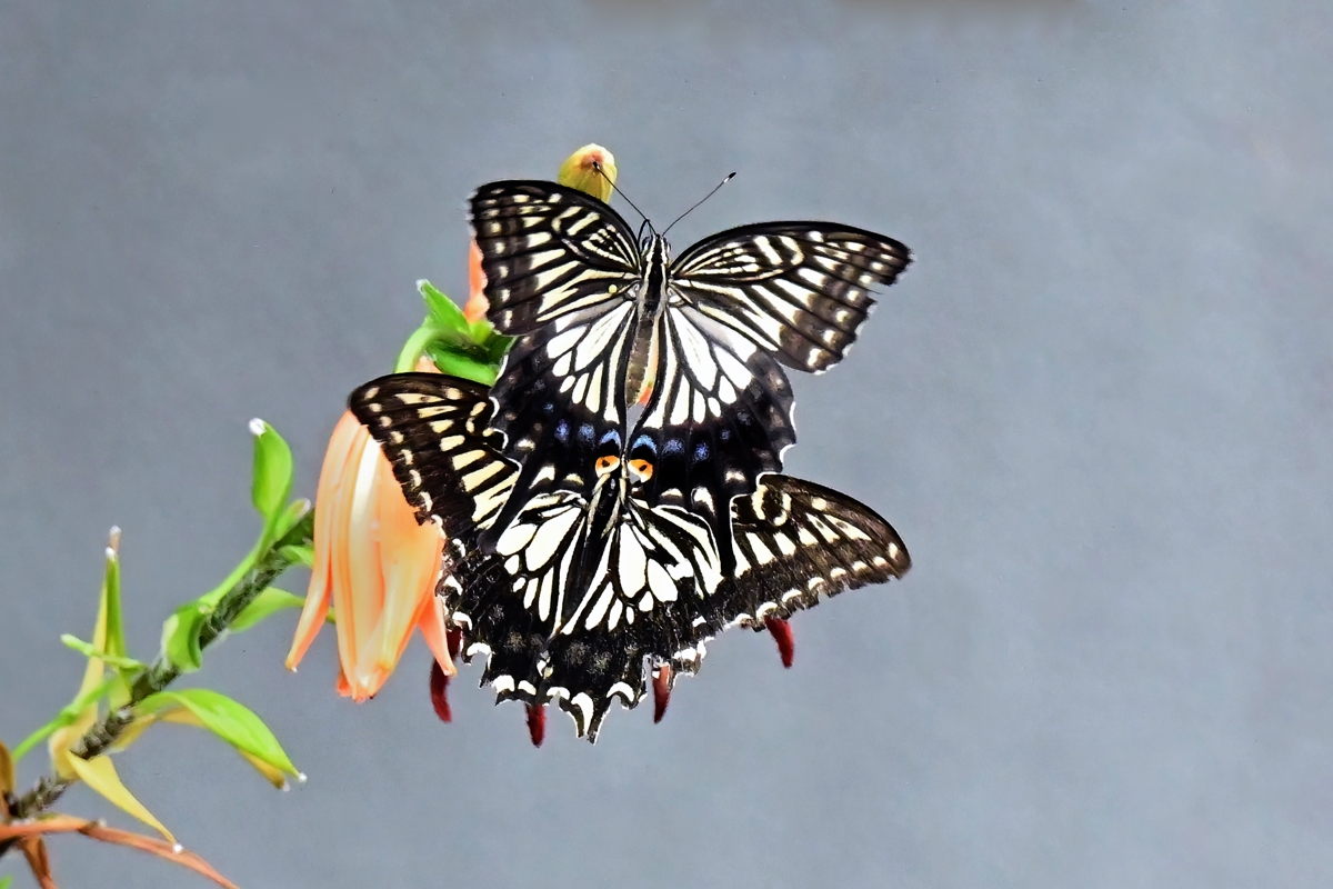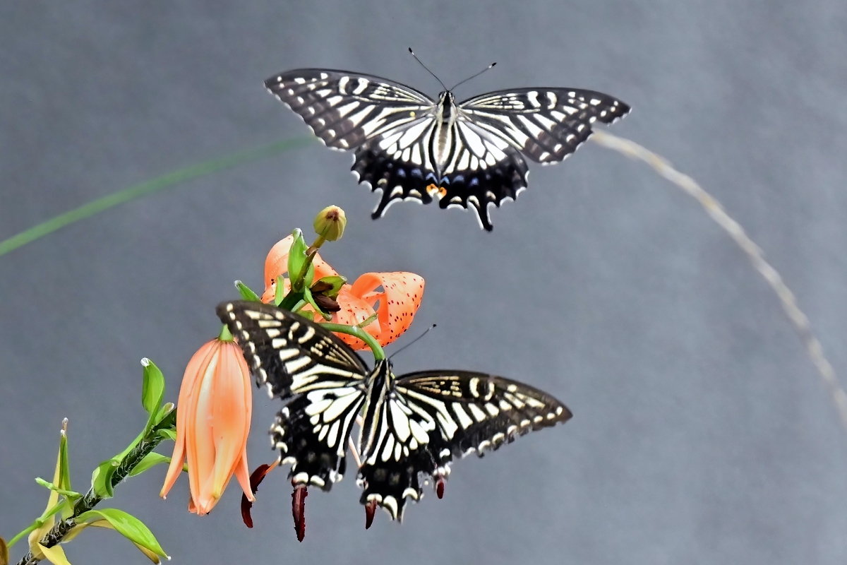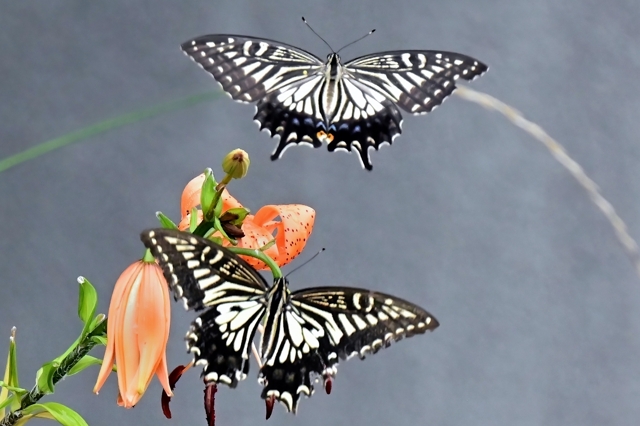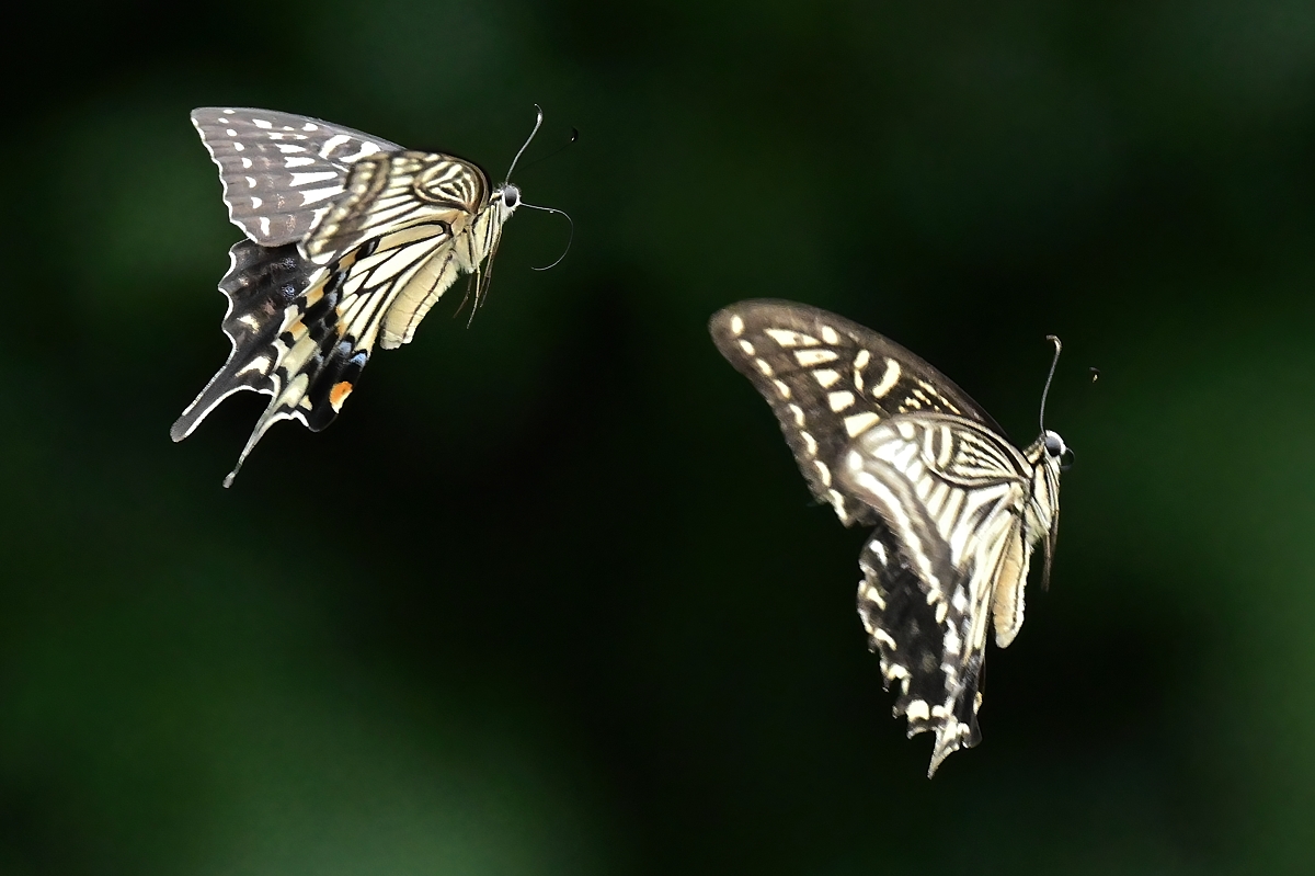 2羽のナミアゲハ。身近で美しい大きめのチョウです。