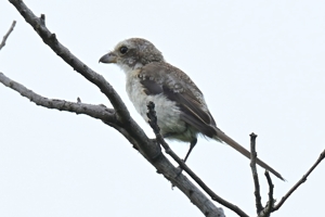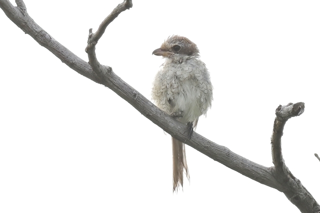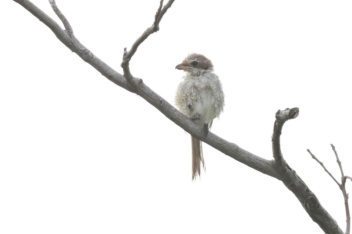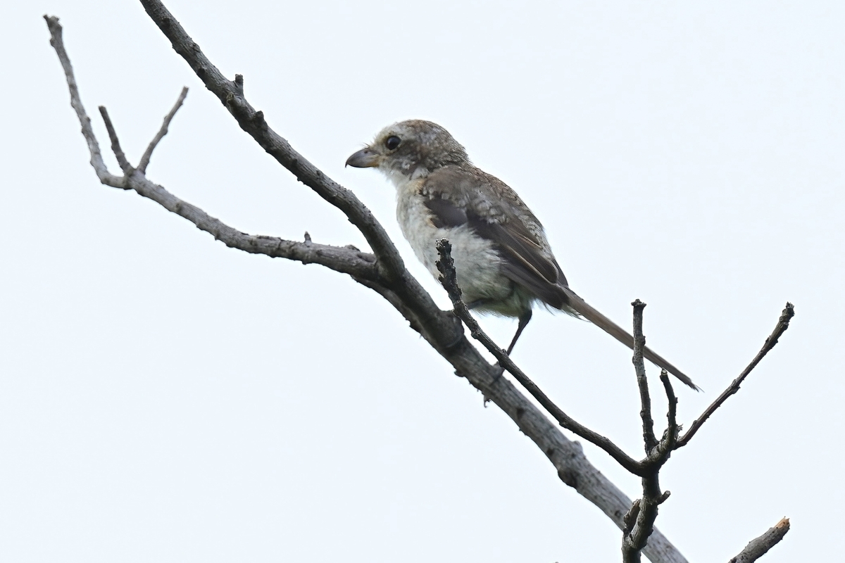3〜4羽のモズ(たぶん幼鳥)が川岸の樹木に入ったり出たり。