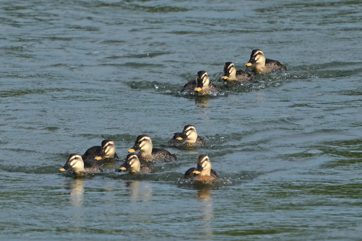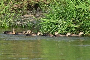 6月1日に見られたカルガモFamilyは、親ガモに連れられた