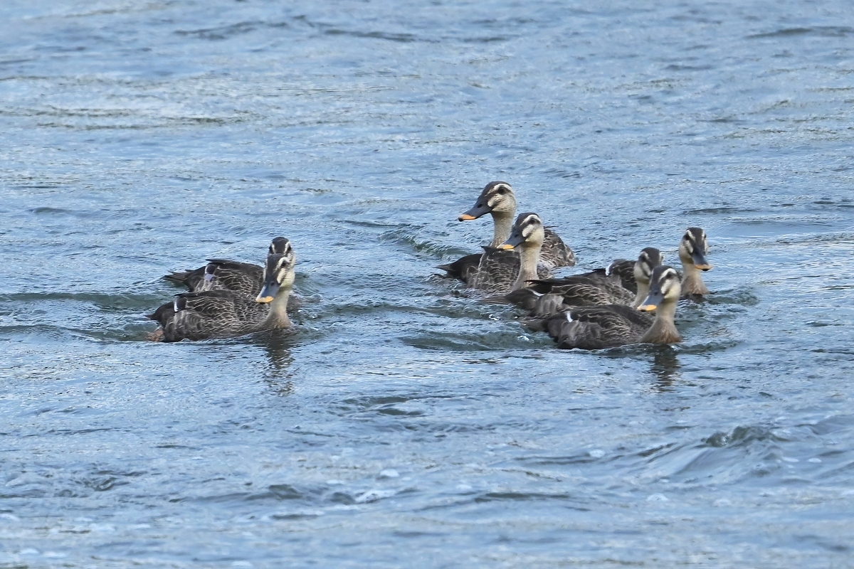 7羽の(たぶん)家族が連れだって泳いでいました。この中に