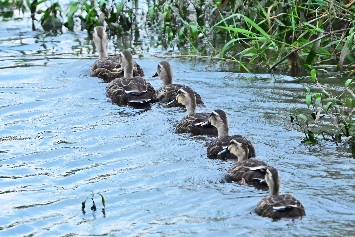 6月1日頃にまんまる頭で現れたカルガモの子どもたちもしっかりと成長。