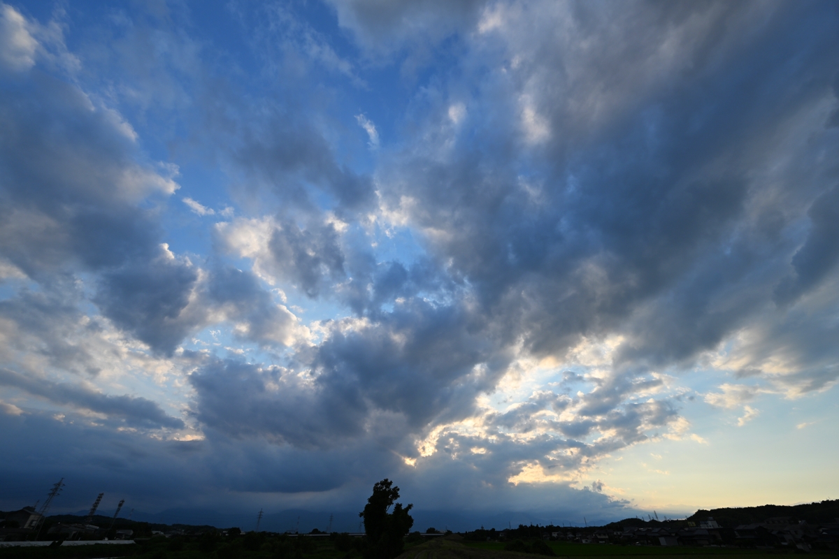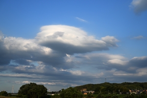 | 北太平洋高気圧の勢力圏に入って、蒸し暑い梅雨の晴れ間。 朝からぐんぐんと気温が上昇し、アメダス桑名で11時07分に 35.6℃を記録。このままいくと大変な暑さになろうかというところ、 その後は北から移動してきた下層雲に覆われて日射が減少。 35.6℃が最高気温となりました。 夕方、再び快晴となったあと、レンズ雲が湧き出すように発生。 そして、これらが成長するように層積雲の空になりました。 |