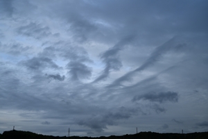 | 梅雨前線は南下して、前線周辺の中・上層雲のもとでは 層積雲が多く現れました。写真は消えつつある層積雲の 層状雲から残った波状雲です。 夜には前線は再び北上して雨が降りました。 |