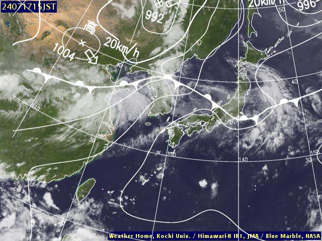 | 地上(高知大学気象情報頁赤外画像と気象庁速報天気図を合成) | |||