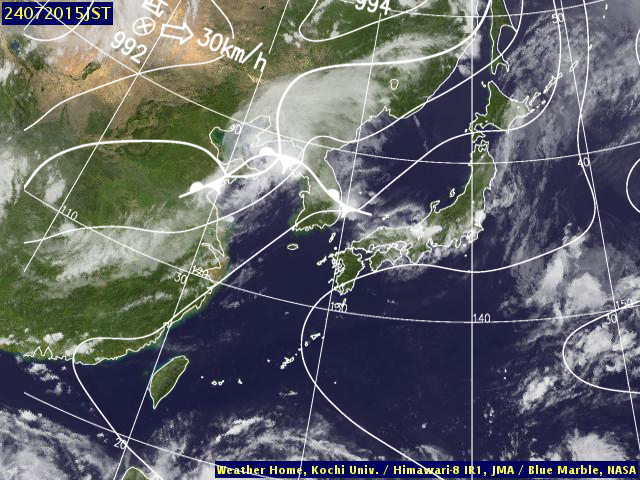 | 地上(高知大学気象情報頁赤外画像と気象庁速報天気図を合成) | |||