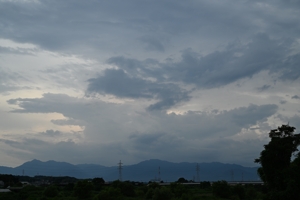 | 梅雨明け後の停滞前線の延長線上に位置して、大気の状態は不安定。 雷はなかったようなので、鈴鹿山脈越しの雄大雲のようです。 雨もぱらつきました。 |