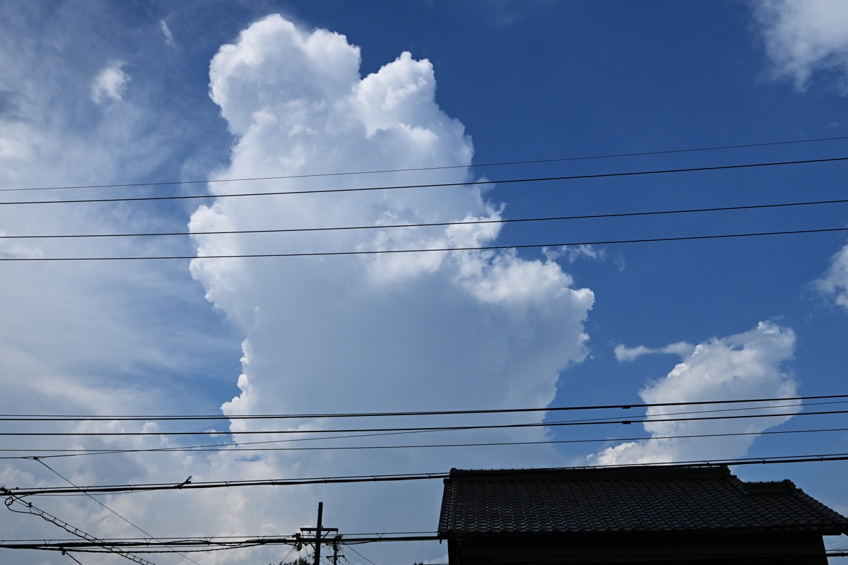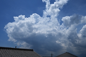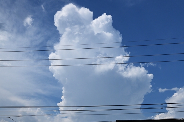 | 台湾付近にある台風3号の下層縁辺流が日本列島に流入。 午後には全国的に積乱雲が発生しました。衛星画像を見ると ほぼ日本中が何らかの積乱雲やその残骸の雲におおわれて いるようで、まさに衛星画像は「積乱雲まみれ」という感じです。 さらに、東北地方では梅雨前線が通っていて、秋田県や山形県 などで、たいへんな雷雨になっていることが報じられました。 桑名でも雷雨が何度か生じ、そのたび、どこを起源とする 積乱雲によるものかわからなくなるほどでした。 写真(上)は、15時過ぎに南から近づいてきた雷雲による雷で、 写真(下)は14時ころの岐阜県美濃地方の積乱雲です。 どちらの雲でも雷鳴・雷光がともに観測されて、ずっと 雷雨が継続しているように感じられることになりました。 |