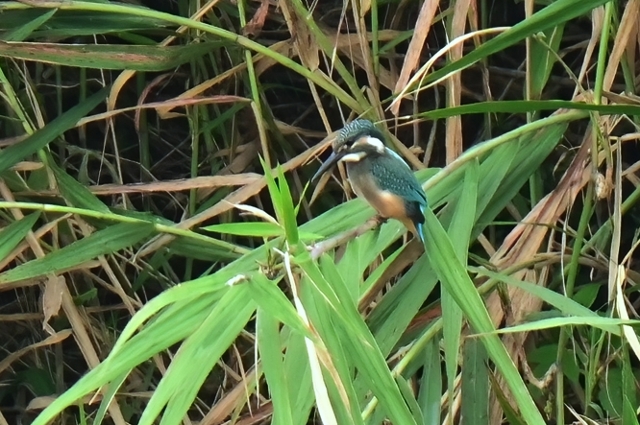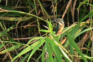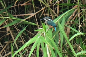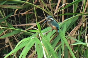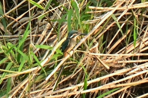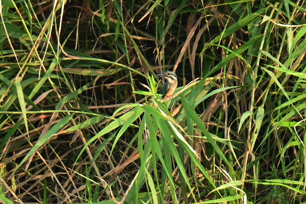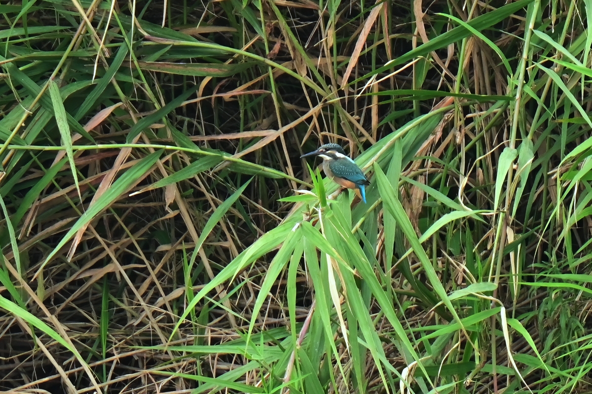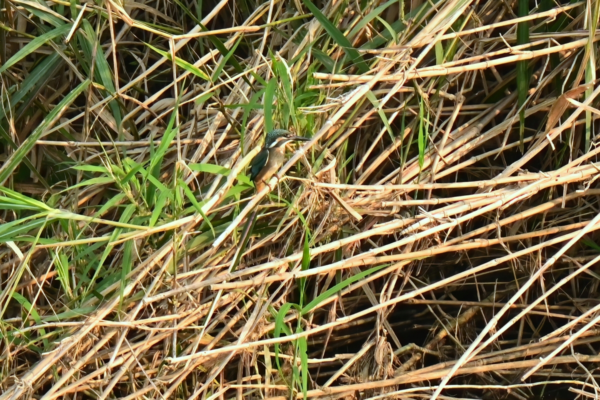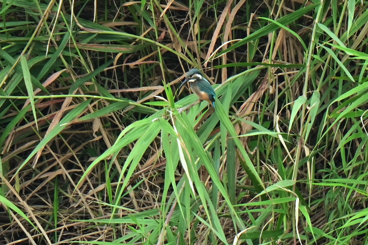 18時ころ、対岸(距離約100m)にカワセミの幼鳥がいました。