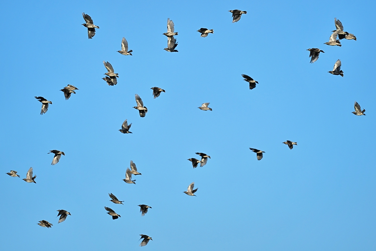 ここ数日、ムクドリの群れが一斉に移動するのが頻繁に見られます。