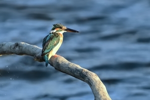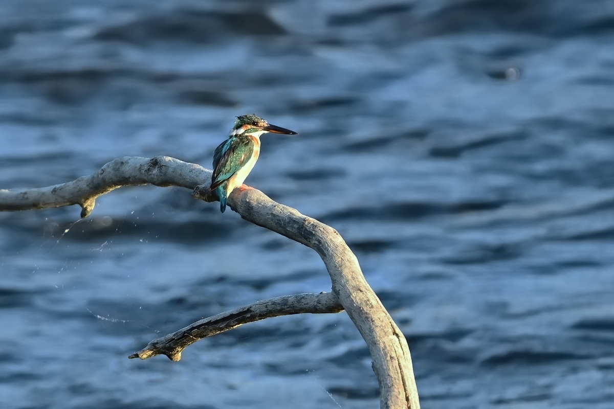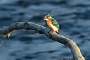| 夕方の員弁川にて。 最近はキジバトやムクドリがよく留まる樹木にコムクドリが来ました。 クリーム色の頭部と、順光を受けて少し光沢をもった翼の緑色が特徴。 コムクドリが去ると、入れ替わってカワセミが登場。日没後にばかり 現れる場所に、18時ころにやってきました。水に飛び込んだあとの ようで羽毛が乱れています。下嘴の付け根に赤みがあり、明確では ないが幼いメスの個体かもしれません。 |