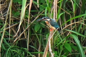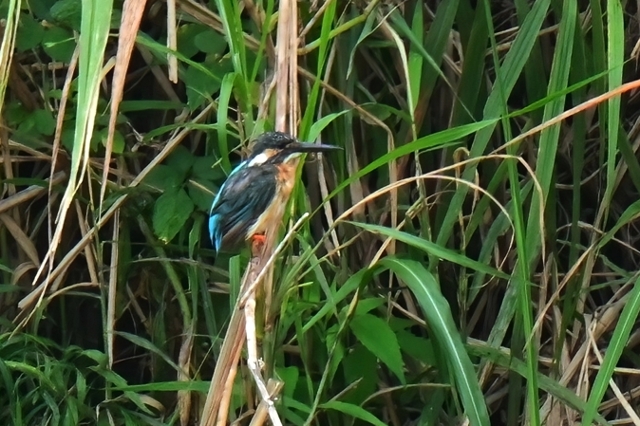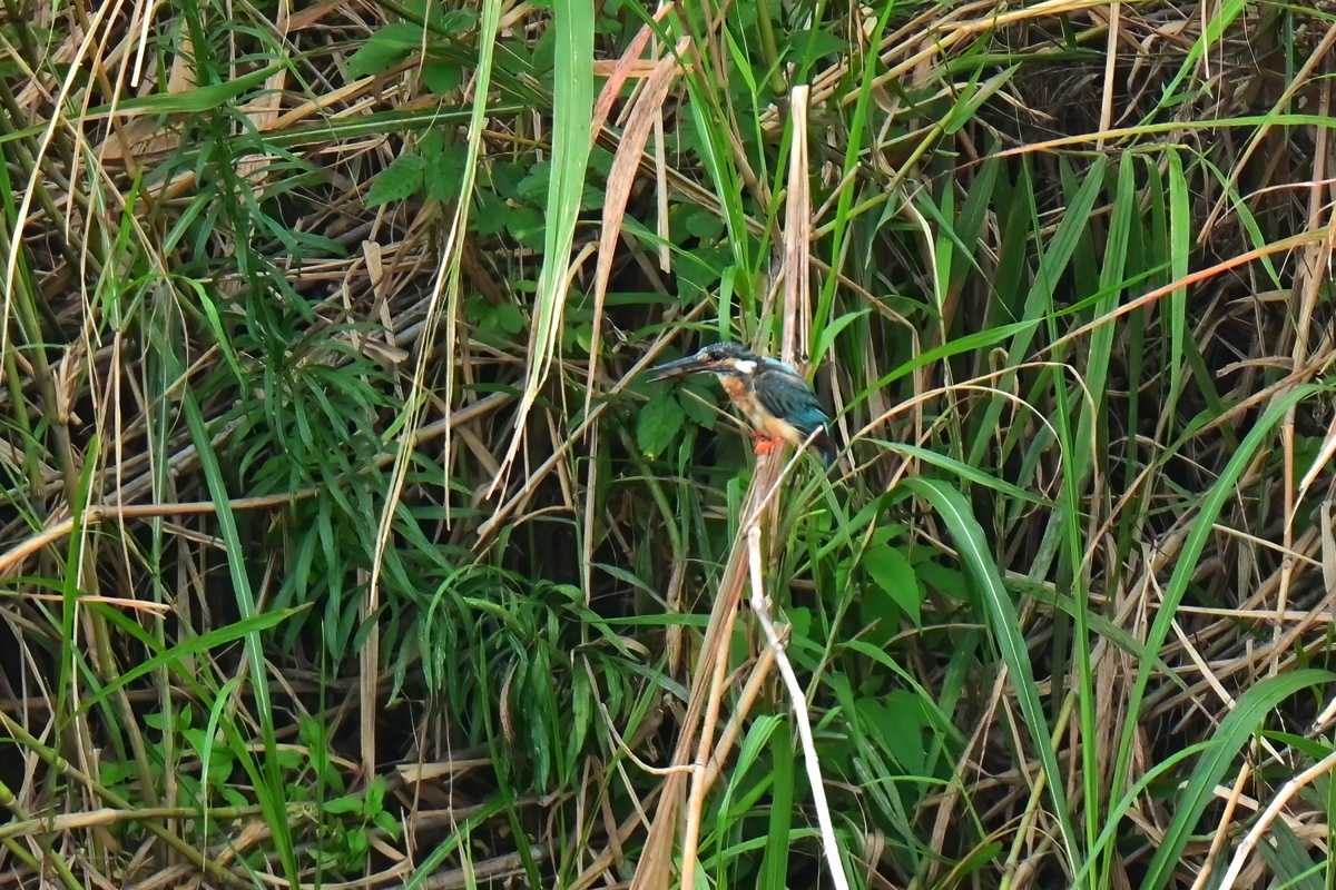 対岸約100mで、幼鳥っぽいカワセミが頻繁に飛び込み。