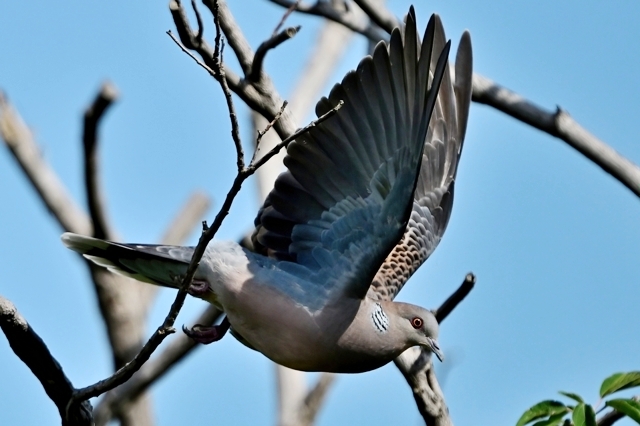 モズの戻ってきた川岸の樹木ですが、やはりキジバトたちが