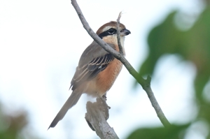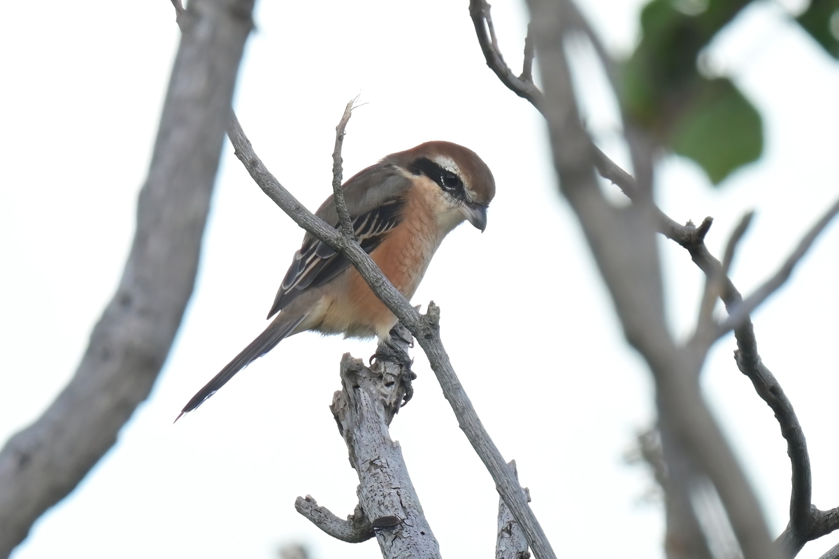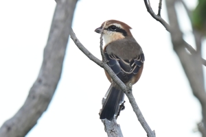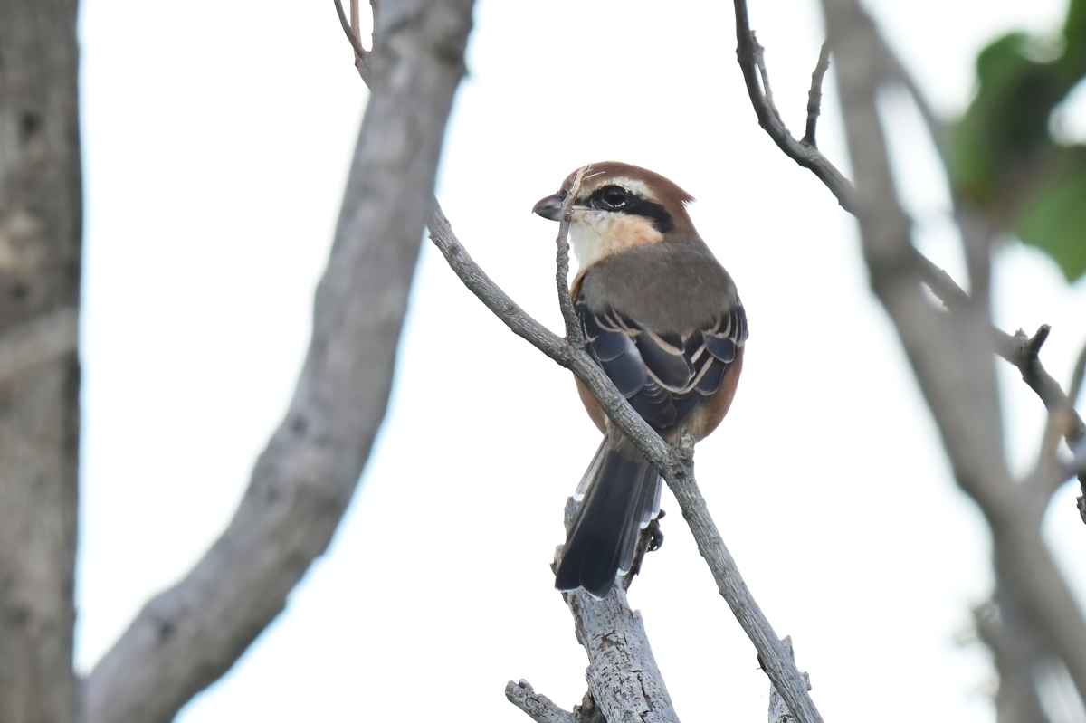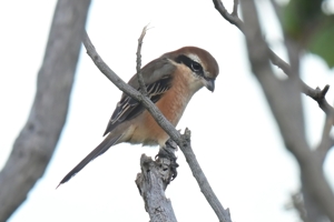 先日から川岸の樹木にもどってきたモズ(オス)です。