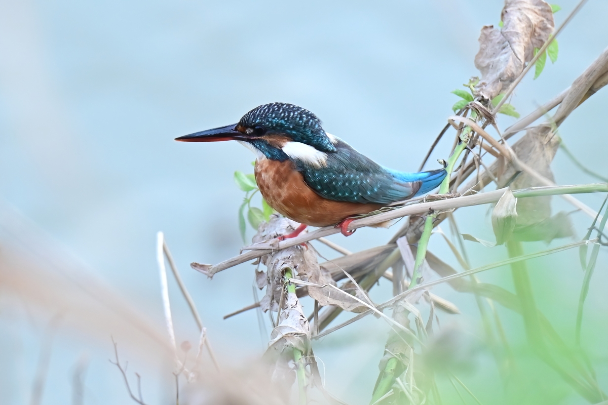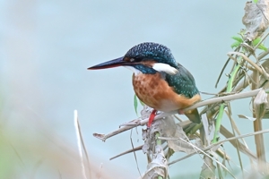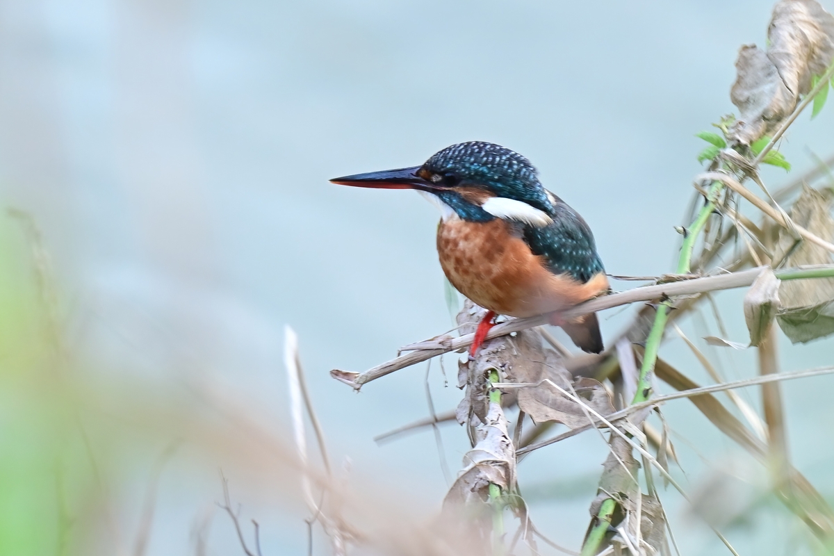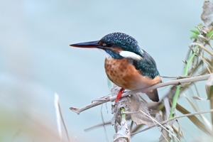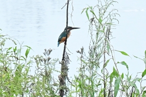 | 台風10号が接近し、桑名市は昨日から大雨警報が継続。 今日の午後は雨が止んで青空も見える中で、員弁川は 大増水して濁流となっており、カワセミがどこにいるか見つけ られるかどうかという気持ちで観察。18時前になって、湿地 のようになった中州にいるのを見つけました。その後、 北側の川岸に移動し、飛翔するカワセミの姿を見たので、 見当をつけて探すと、ちょうど見える場所に留まっていました。 写真では下嘴が赤みを帯びていて、メスの個体かも。 ただし、10mあまりの距離での俯瞰で、明るい川面の 逆光だったので光を透かしているせいかもしれません。 |
