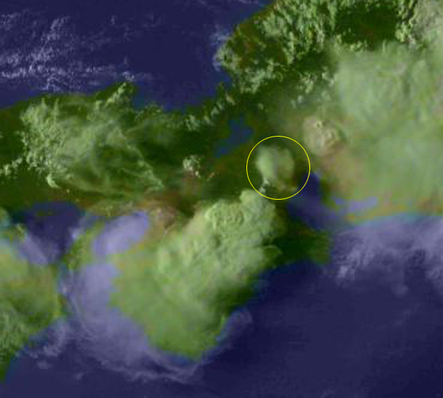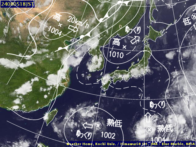 | 地上(高知大学気象情報頁赤外画像と気象庁速報天気図を合成) | |||