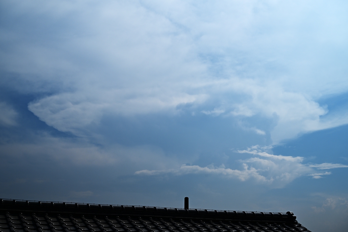 | 見渡せば、そこかしこに積乱雲とそのかなとこ雲が存在する一日。 かなとこ雲にハロが見えたりもしました。中下層雲もかさなって 遠方の雲が不明瞭になりがちななか、三重県内の伊賀方面の ものと思われるかなとこ雲が印象的でした。 |