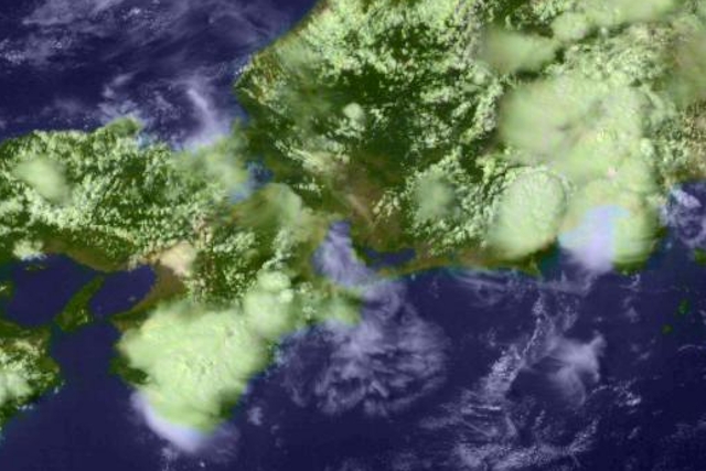 | 地上(高知大学気象情報頁赤外画像と気象庁速報天気図を合成) | |||