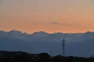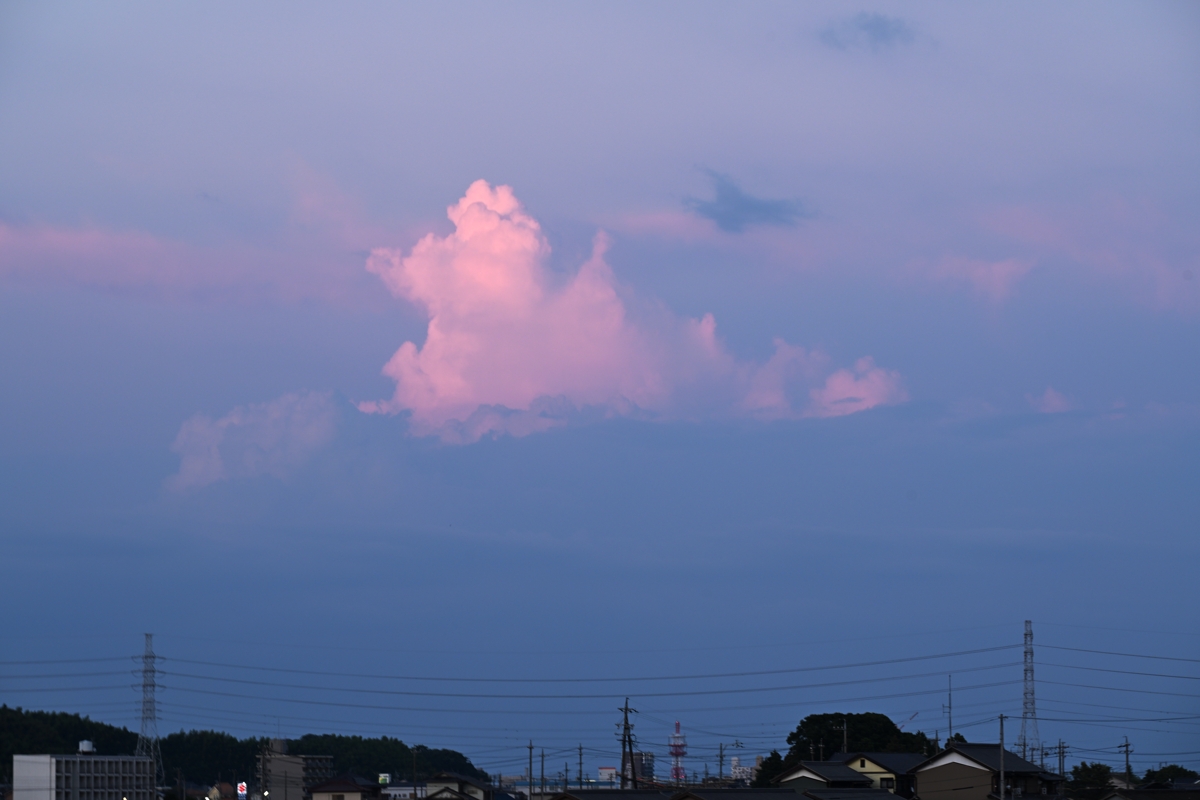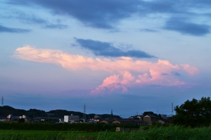 | 台風5号の影響で流入した空気によって大気の状態は安定化。 最高気温(桑名)は38.8℃ながらも日射の弱まる夕方には ずいぶんと涼しさが感じられました。 積乱雲もぐんと少なくなり、夕方では愛知・長野・岐阜県境付近の ものが見えるのみで、これも弱雷程度の活動のようでした。 |