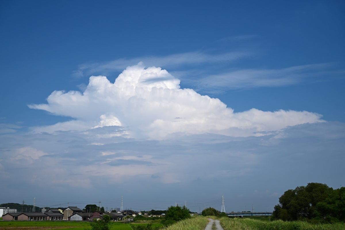 | 桑名の最高気温は37.7℃で、22日連続の猛暑日。 午後になると、どの方角を向いても積乱雲が発生していて、 衛星画像を見た感じでは、台風7号の縁辺流が原因の一つ となっているようです。中でも、東の尾張方面の積乱雲は じゃまをする下層雲がない、美しいもので、ここから次々と 西側で発達する積乱雲が桑名にも迫ってきて、雷鳴の聞こえる 時間が日没過ぎまでつづきました。雨はなかったものの、 積乱雲からの降水による淡い虹がありました。 南西の空の積乱雲のかなとこ雲には幻日も輝きました。 雷の撮影も行いましたが、雷雲は北のほうを西へ移動 していき、遠方の雷がいくつか見られたのみでした。 |