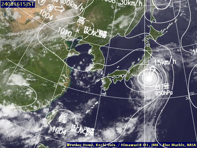 | 地上(高知大学気象情報頁赤外画像と気象庁速報天気図を合成) | |||