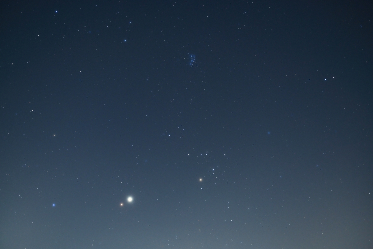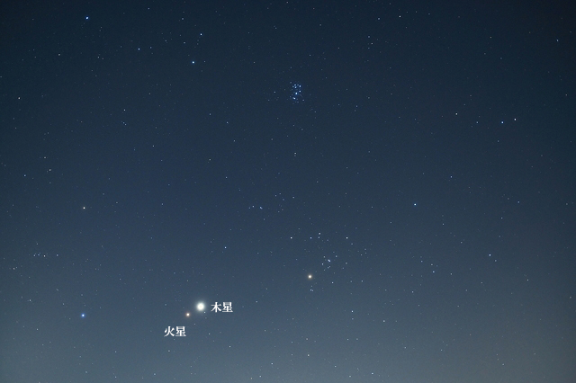 | 火星・木星の接近 02:44 50mm 背景はおうし座。 |