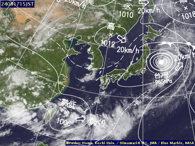 | 地上(高知大学気象情報頁赤外画像と気象庁速報天気図を合成) | |||