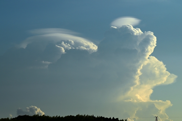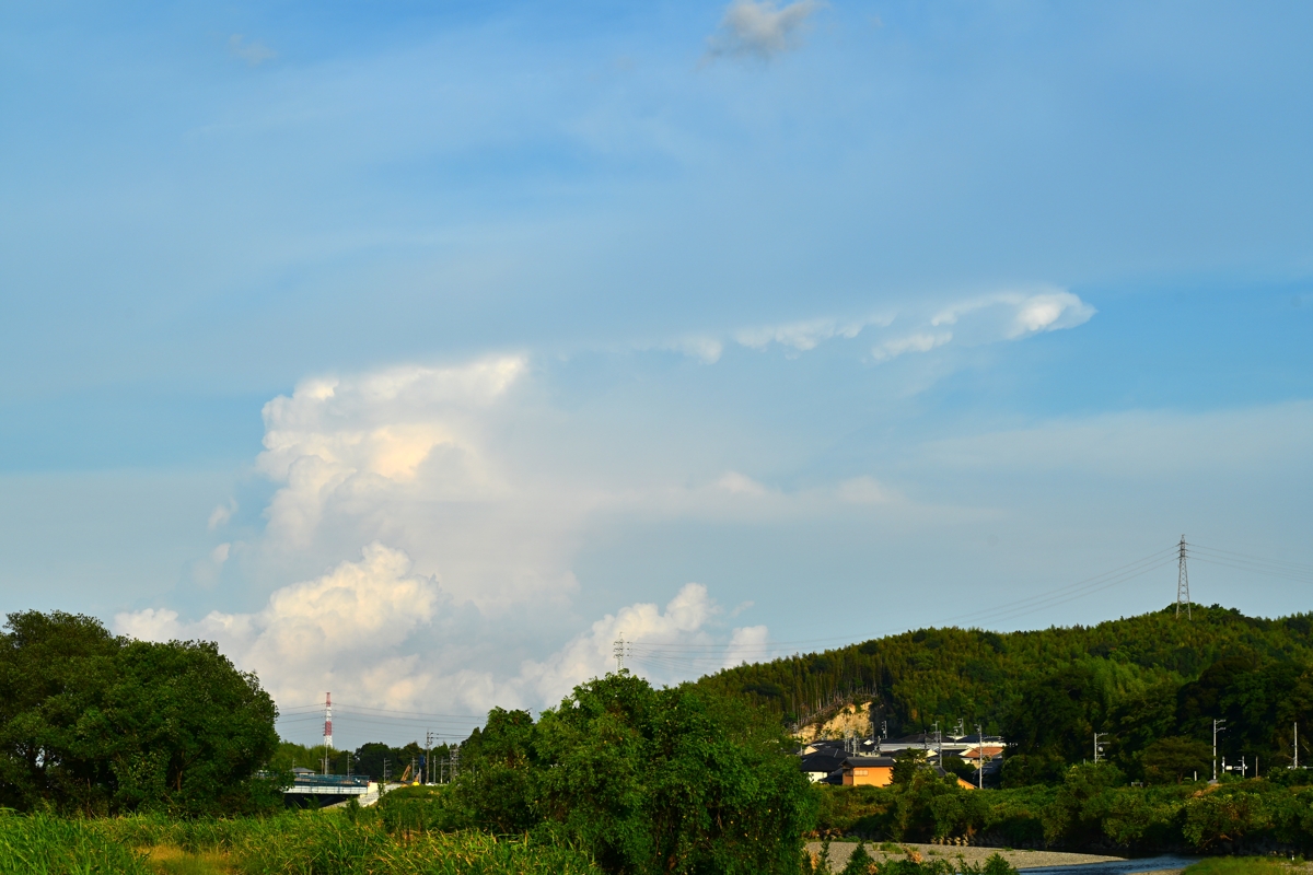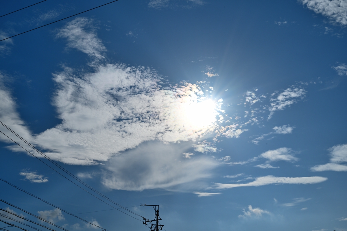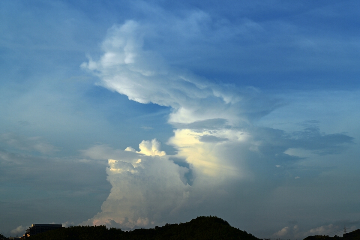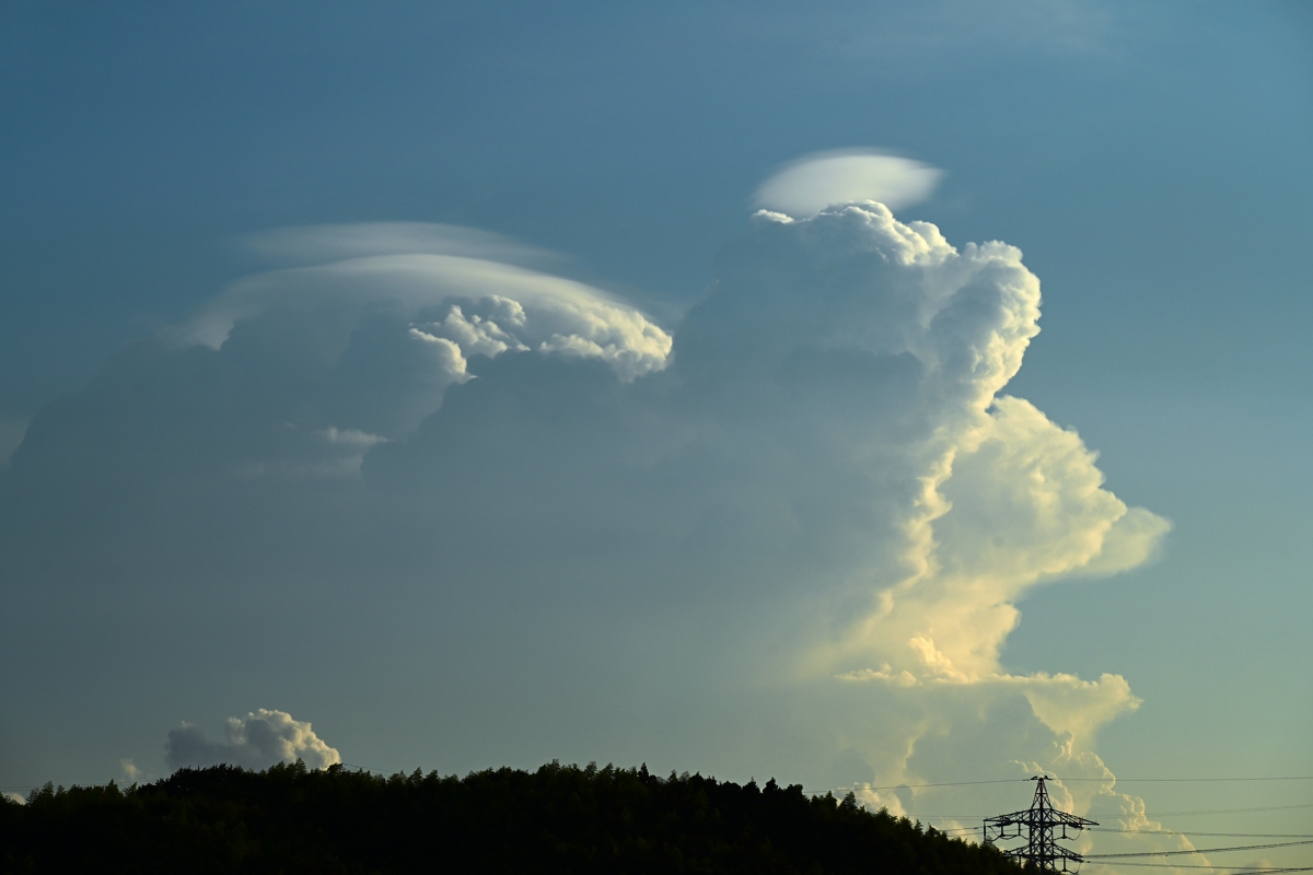 日本海に進んで温帯低気圧化した熱帯低気圧が湿った空気を もたらしていて、最高気温(桑名)は34.8℃ながら猛暑日以上の 蒸し暑さ。昼頃から静岡県方面や三重県南部に積乱雲が生じて いても、(自身には)危険を感じる暑さで屋外に出るのを自重して しまいました。昼頃の空は地形性のものと思われる巻積雲が 広がっており、その雲片がとろけるように広がってクリーミーな 質感の雲と混ざる美しさ。巻積雲には光環も見られました。 夕方になって、見晴らしの良い場所に行ってみるとすでに 積乱雲の残骸の雲があり、尾流雲が太陽の両側22°に 来るたびに明るく色鮮やかな幻日が頻繁に出現しました。 また、新しいライフステージの積乱雲が静岡県方面・岐阜県 多治見方面・奈良盆地方面に見られました。特に目が離せ なかったのは奈良盆地方面のもの。積層構造の美しい ずきん雲が太陽光を半逆光で透かせてとてもきれいでした。 |