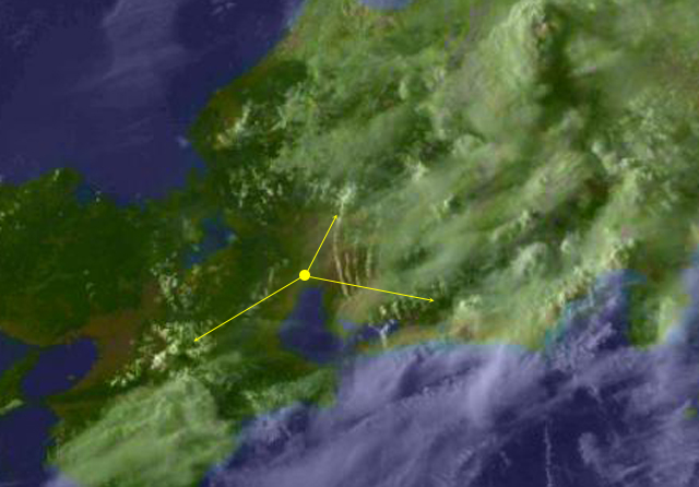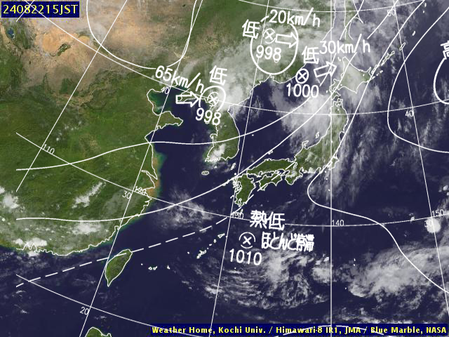 | 地上(高知大学気象情報頁赤外画像と気象庁速報天気図を合成) | |||
