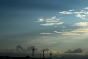 幻日(太陽の左) 16:22 70mm 落下する雲の残骸に生じている。 |