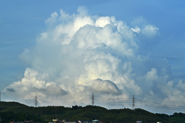 | 台風10号は勢力を急速に弱めつつも、台風から離れた各地で 大雨を降らせています。昨日の津市では24時間雨量が330.5mm と、8月の観測史上の最大の雨量になりました。 桑名は昨日から大雨警報が継続中。今日は午前に驟雨があって、 風が北寄りから南寄りに急変しました。その後は青空も見える空。 東にあった大きな雄大雲はその雲塊が平行移動するように北へ 流れていきました。今夜から明日にかけてはまた大雨の可能性が あり、これまでの雨量もあって土砂災害に警戒が必要です。 |