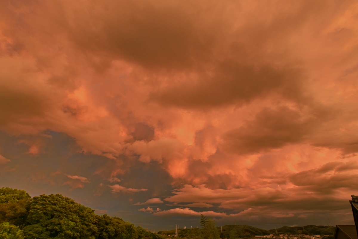 | 「台風独特の 金赤色の夕焼け/夜の空」(桑名市) | |||