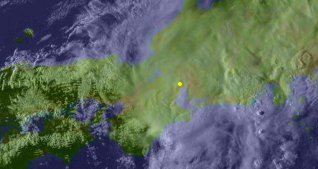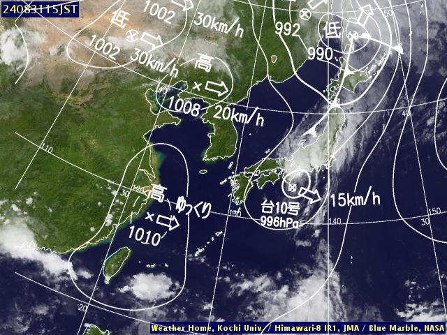 | 地上(高知大学気象情報頁赤外画像と気象庁速報天気図を合成) | |||