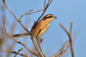 岸辺の樹木に20〜30分おきくらいにモズが来て高鳴きをしました。
