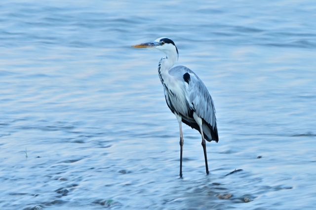 日没前、まだ明るい中で、アオサギをスローシャッター撮影。