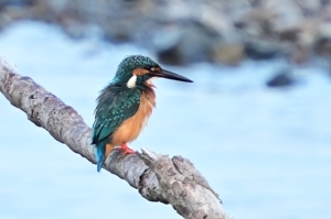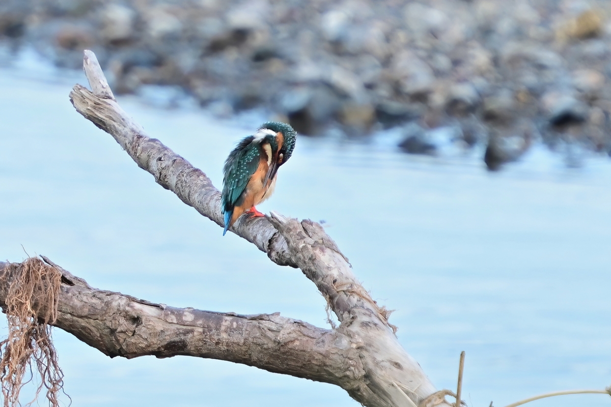 まだ日没前ながら、太陽が雲に隠れてからカワセミが登場。