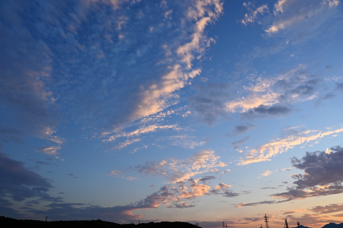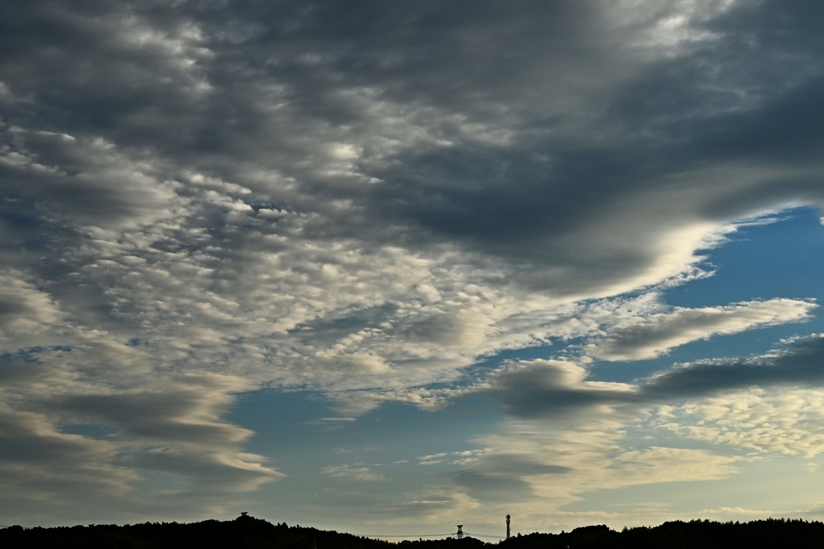 | 山麓から始まる高積雲・層積雲 17:29 南西 70mm レンズ雲も多く見られる。 |