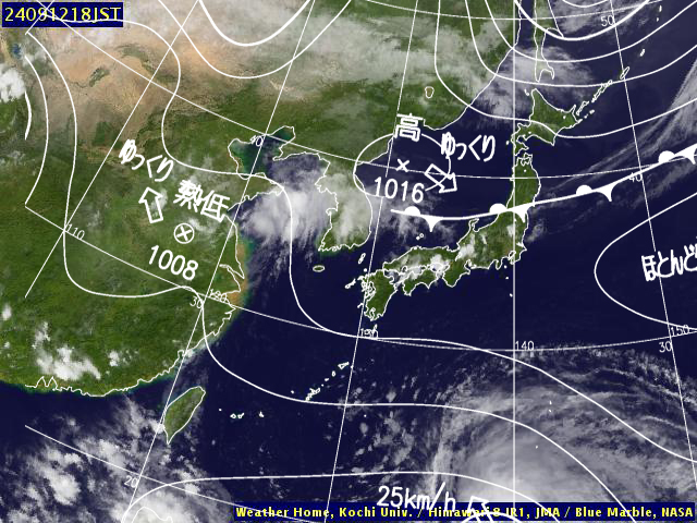| 地上(高知大学気象情報頁赤外画像と気象庁速報天気図を合成) | |||