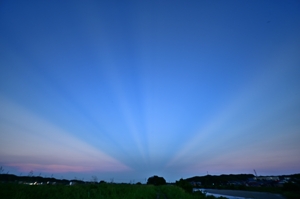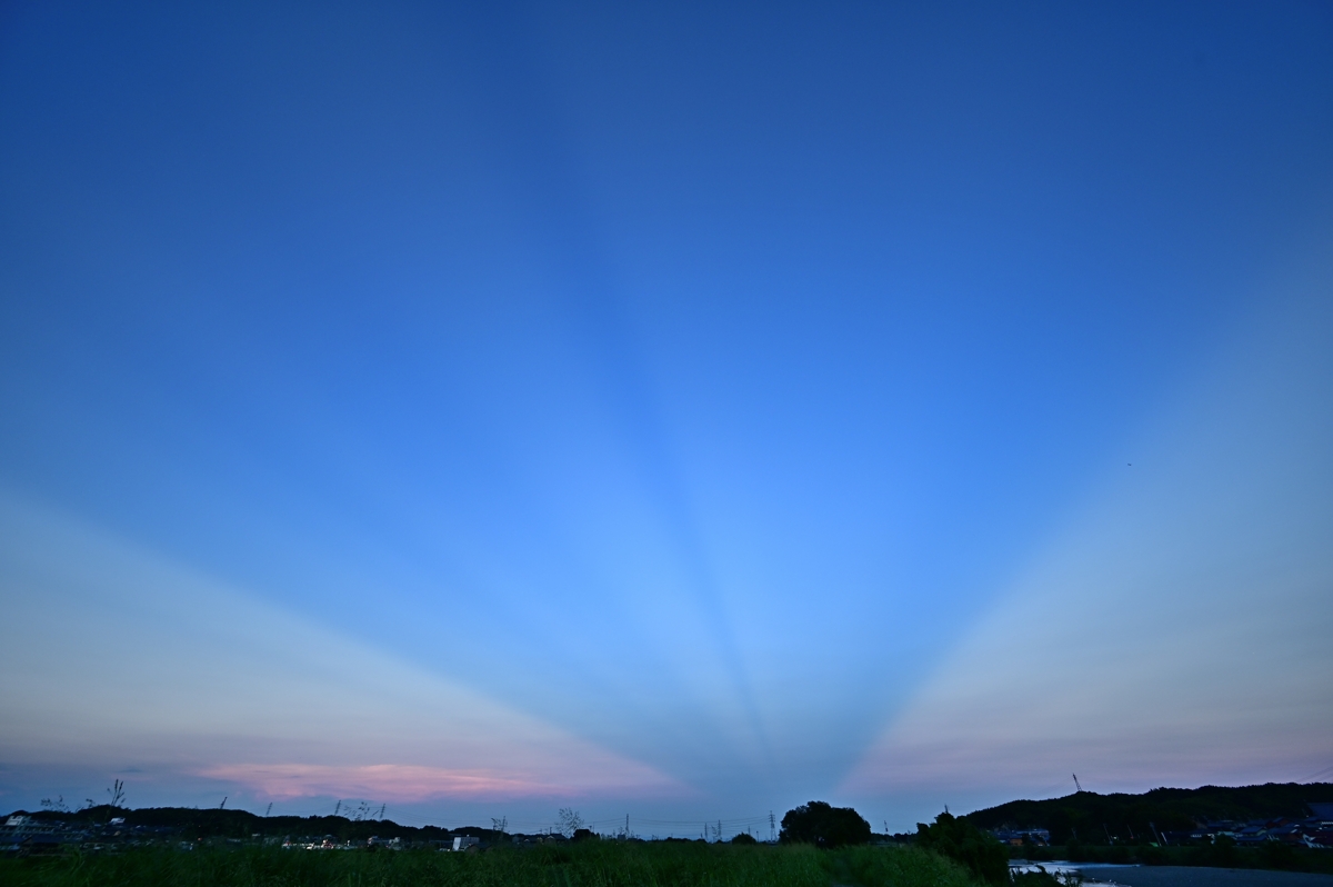 | 反薄明光線 18:04 東 14mm 西方のかなとこ雲のシルエットを反映 |