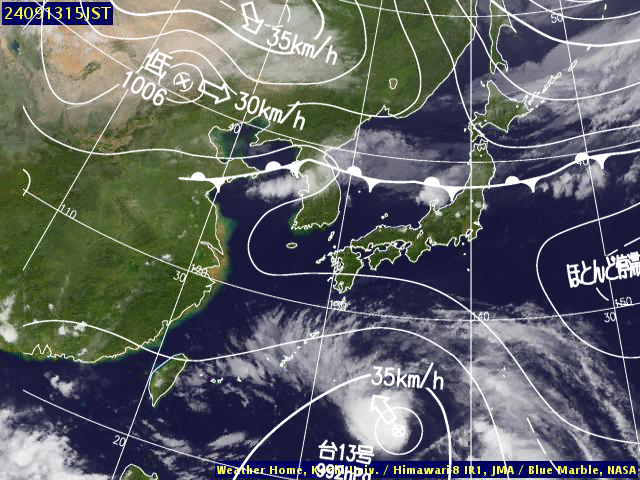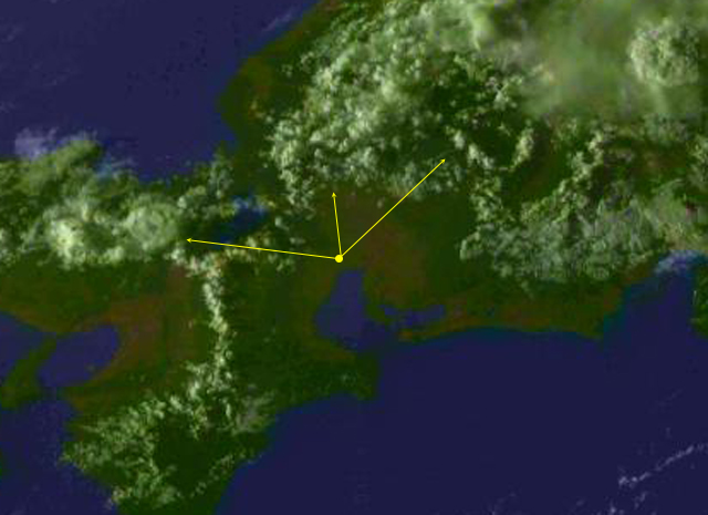 | 地上(高知大学気象情報頁赤外画像と気象庁速報天気図を合成) | |||