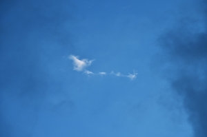 ひも状の雲 17:53 南西 200mm 撮影前は細い糸のよう。 蒸発するレンズ雲のよう。 |