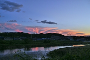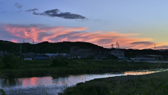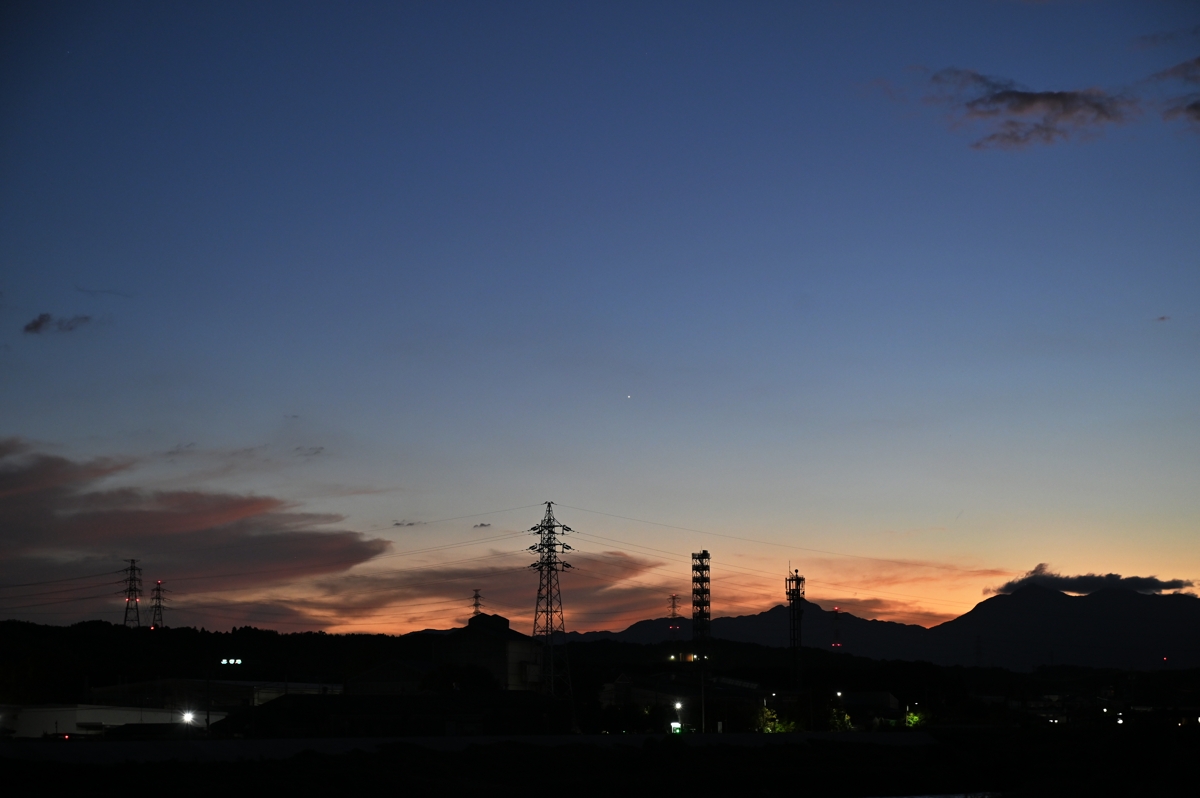 | 秋雨前線は大きく南下して、秋の涼しい空気に包まれました。 九州の南には低気圧が発生して、これに伴う上層の雲が 夕方に西からやってきたのが南の低空に見えました。 これは日没後の夕焼けの光に照らされて急激に顕著に なり、飽きることなく眺められるとても美しい光景でした。 その後見えてきたのは、まだ低い空にある金星。 日に日に明るさを増し、一番星らしくなってきました。 |