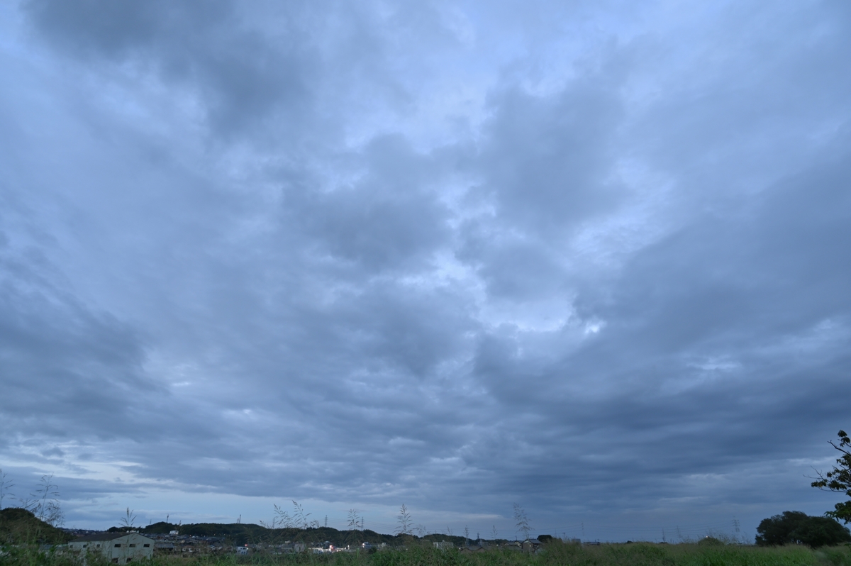 南岸では東方の秋雨前線に続くように、熱帯低気圧の雲域。 夕方には層積雲が広がって、べた曇りに。 明日は、台風14号から変わった熱帯低気圧も加わって、 南から暖湿気流が入り、関東や東海で大雨のおそれも。 |