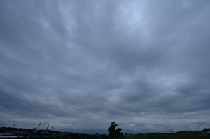 | 今日も南岸に秋雨前線。 夕方は乱層雲が薄くなってほぼ層積雲となり、西方で雲が 少なかったようで、わずかに夕陽が入り、パープル色の 夕焼けになりました。この夕焼けの色合いは、梅雨や この秋雨の時期によく見られる印象があります。 |