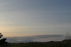 | 300hPa高層天気図では、寒気と低圧部が南下した細長い領域が あり、これに沿ったジェット気流で上層の雲が生じていた模様。 ずっと観察はしていられなかったものの、午後に22°ハロ。 日没後にはピンク色を帯びた巻層雲の美しい夕焼けでした。 |