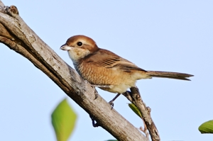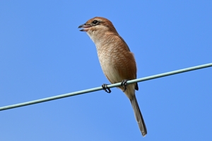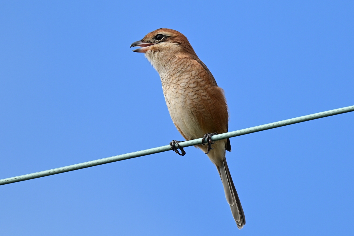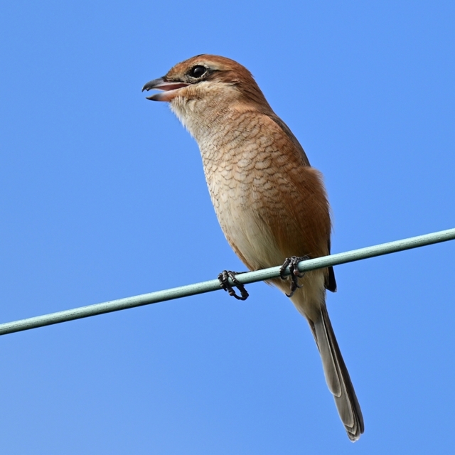 昼、自宅の2階の窓のすぐ近くにモズ(メス)が来て鳴いていました。