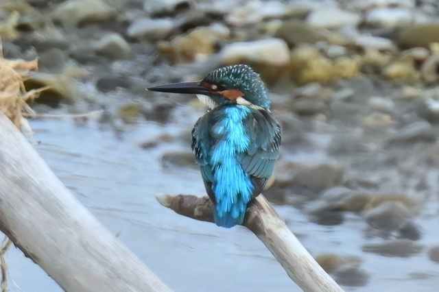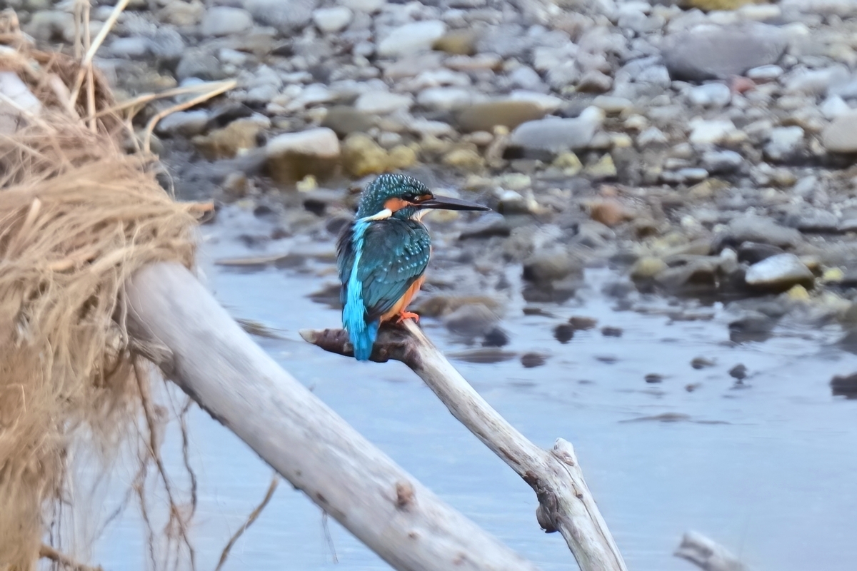 早めの明るい時間帯に、カワセミがいつものポイントに登場。