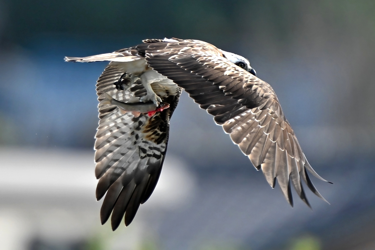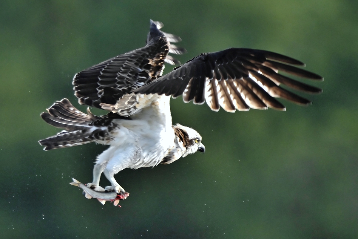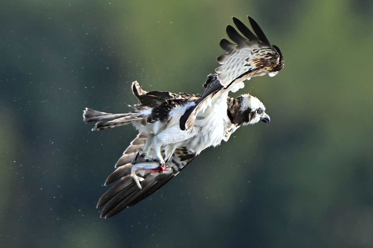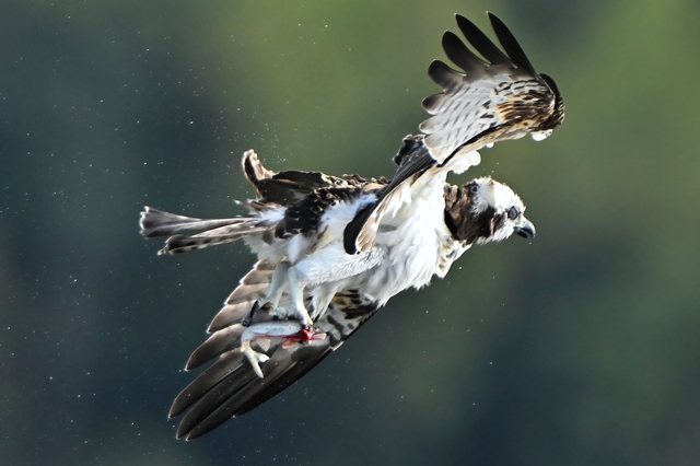| 「鮎をキャッチ、水しぶきをあげて飛び去る ミサゴ」(桑名市) | |||