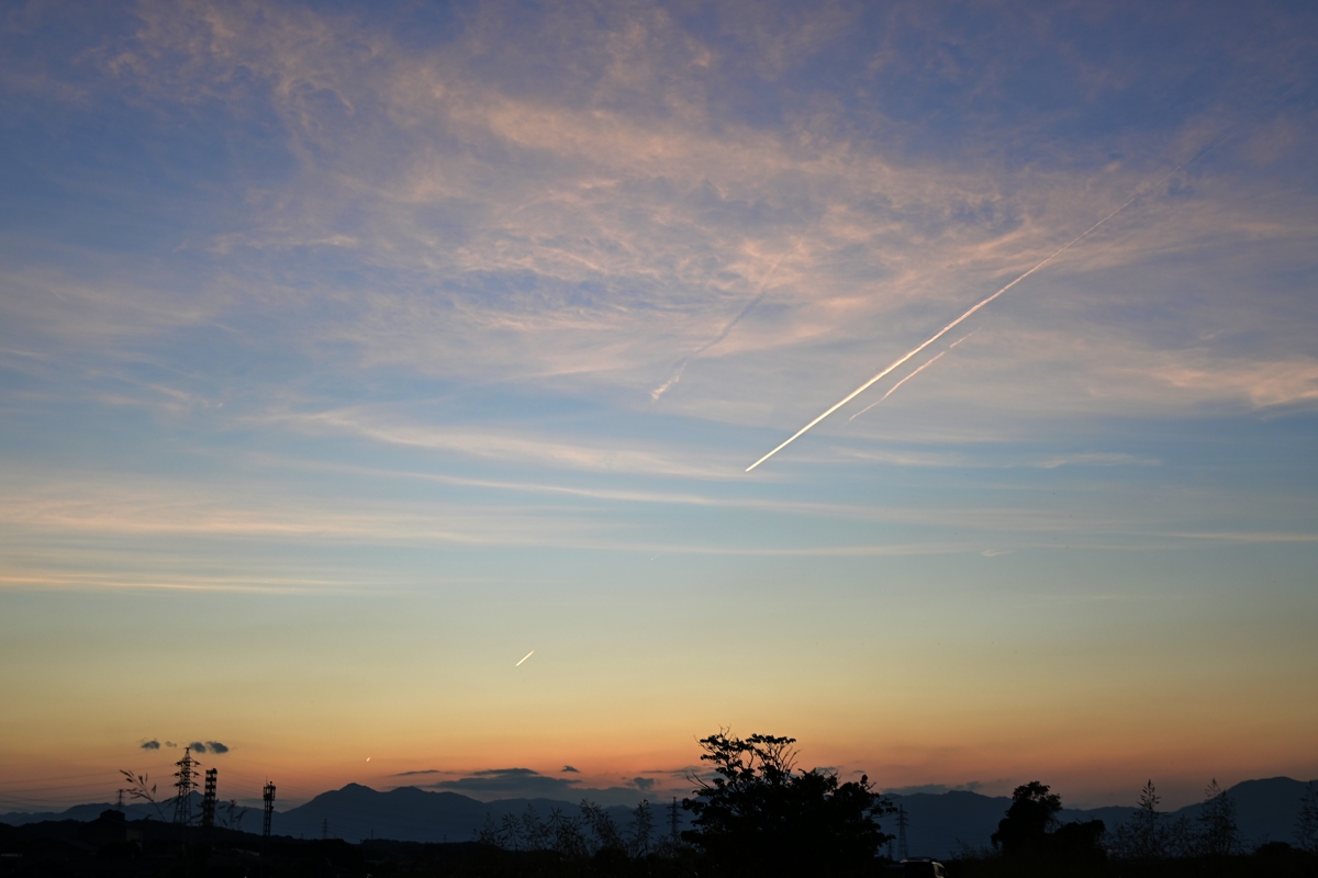 飛行機雲 17:49 西南西 1275mm 日没は17:37 |