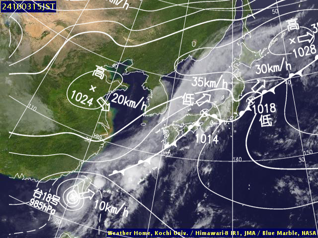 (高知大学気象情報頁赤外画像と気象庁速報天気図を合成)