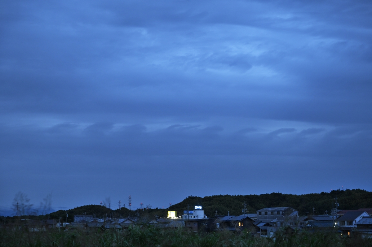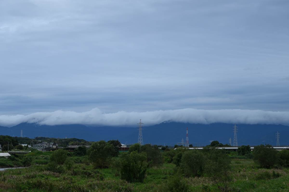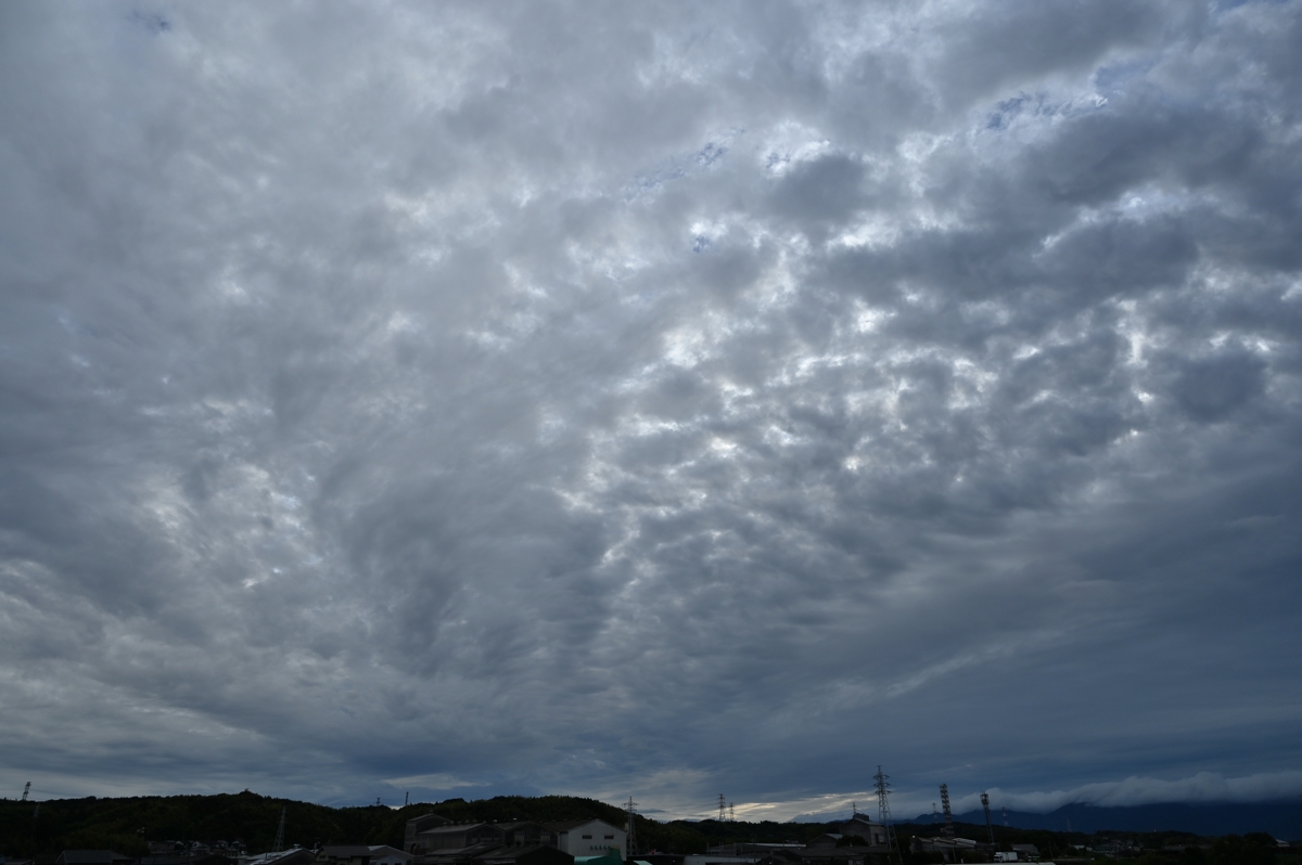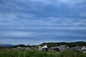 秋雨前線は南岸に下がり、冷たい空気が入りました。 鈴鹿山脈を毛布のように覆うかのような風枕の雲が顕著。 そして、層積雲が広がる空の中で、北西の空に不安定波雲が 2シリーズ、見られました。 |